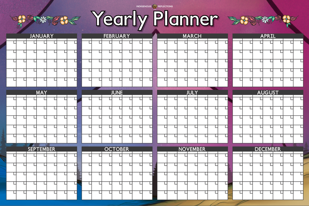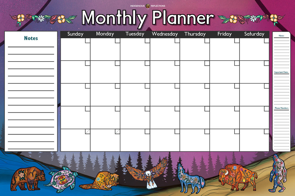 Undated laminated 30 day planner on one side, year-at-a-glance on other side. 36” x 24” (91.44cm x 60.96cm)